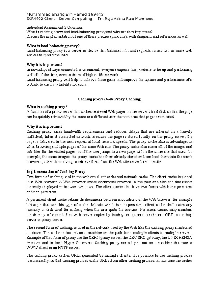 when browsing multiple pages of the same Web site. The proxy cache also stores all of the images and