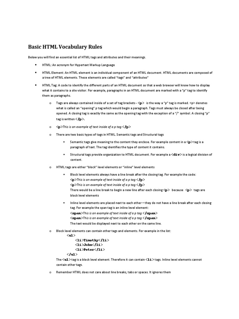 Below you will find an essential list of HTML tags and attributes and their meanings.