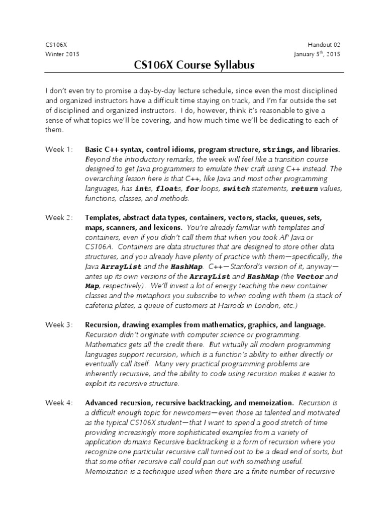 sense of what topics well be covering, and how much time well be dedicating to each of