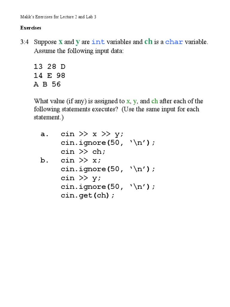 3:4 Suppose x and y are int variables and ch is a char variable.
