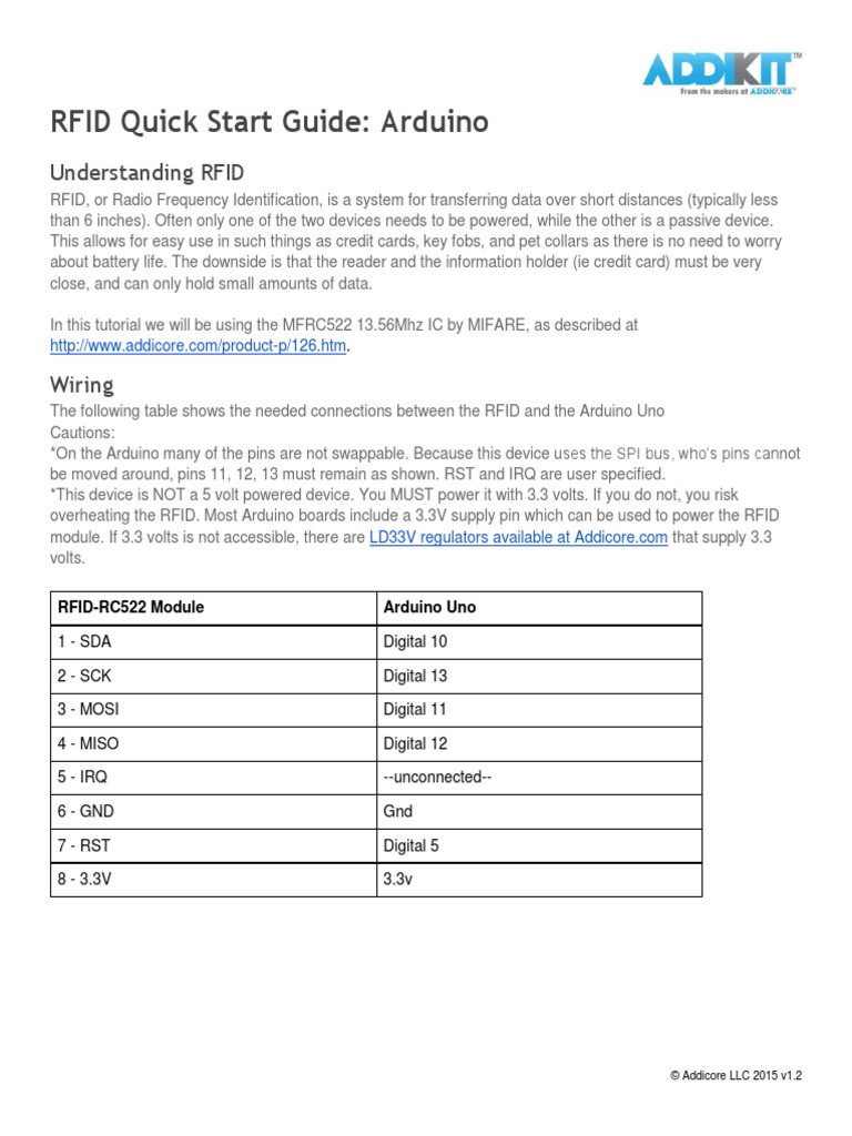 overheating the RFID. Most Arduino boards include a 3.3V supply pin which can be used to power the RFID