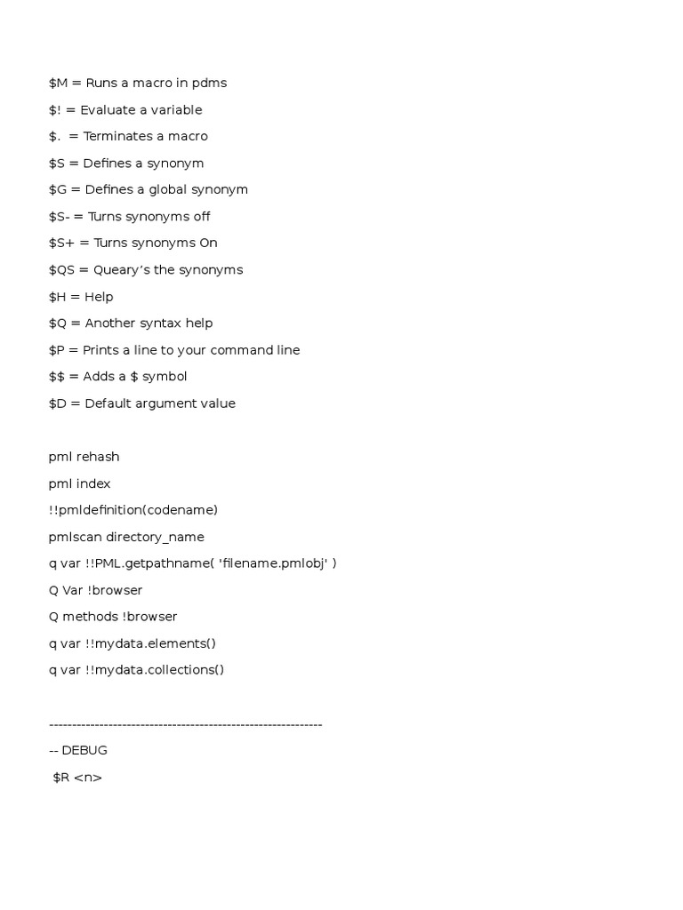 $M = Runs a macro in pdms