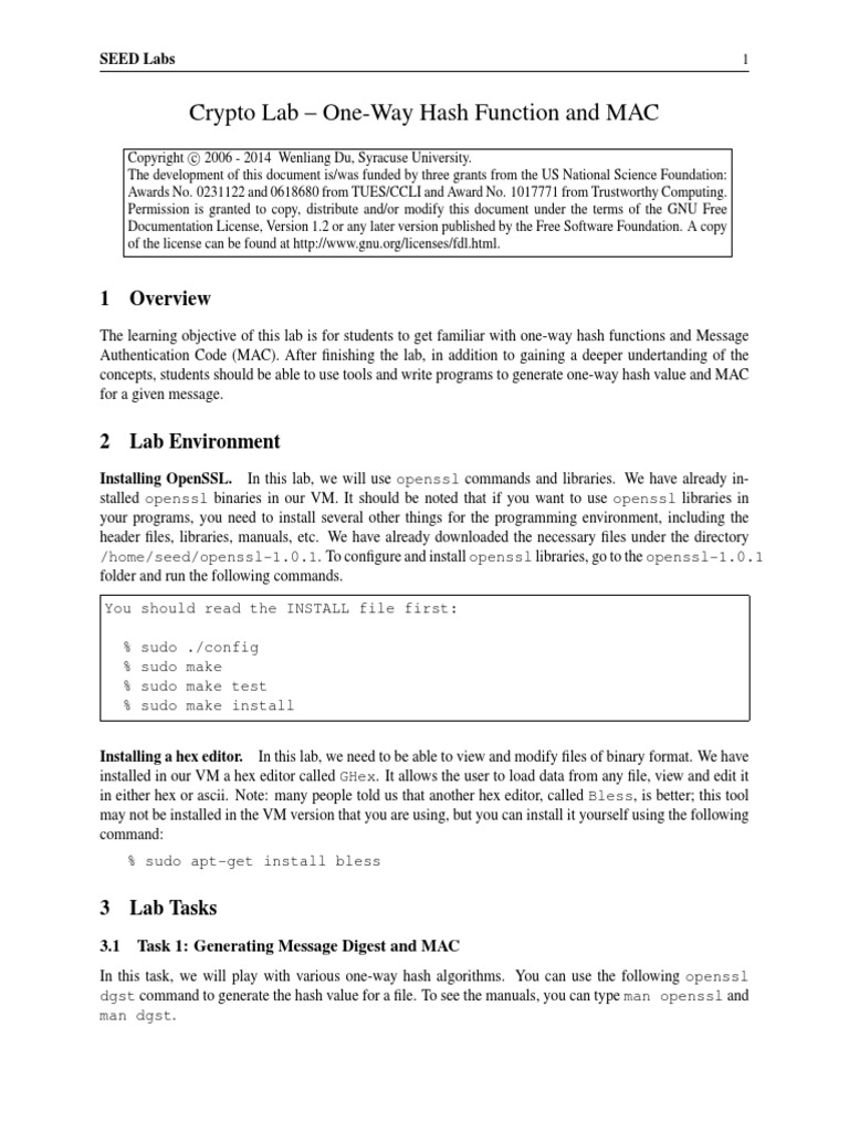 Crypto Lab One-Way Hash Function and MAC
