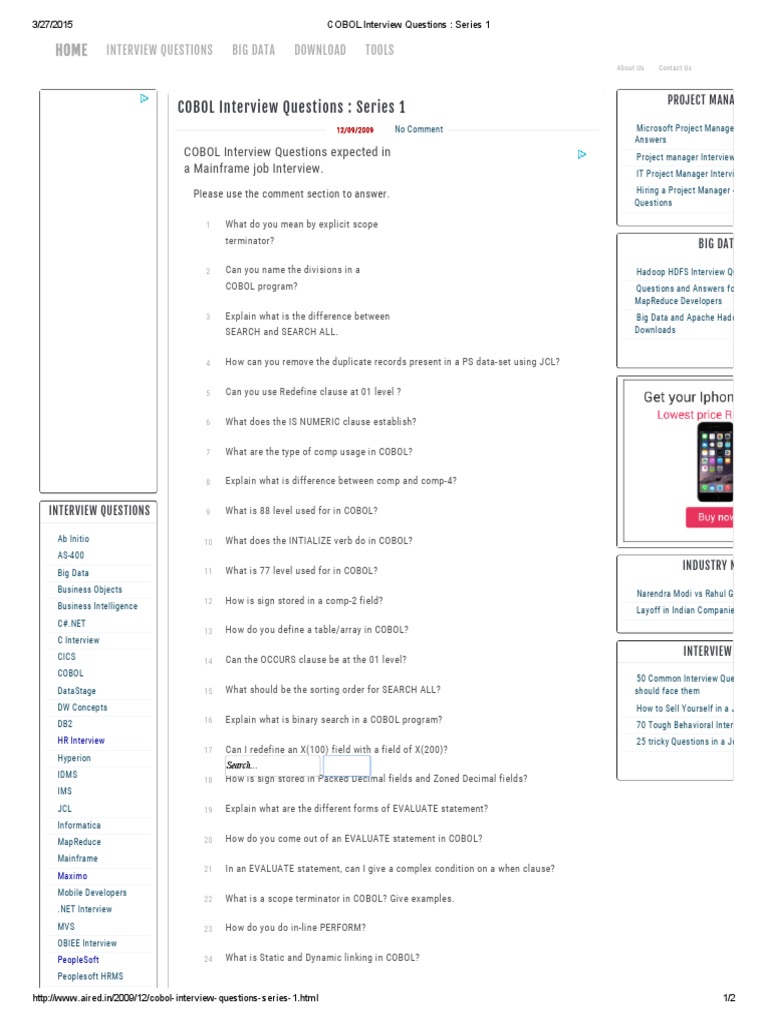 http://www.aired.in/2009/12/cobolinterviewquestionsseries1.html