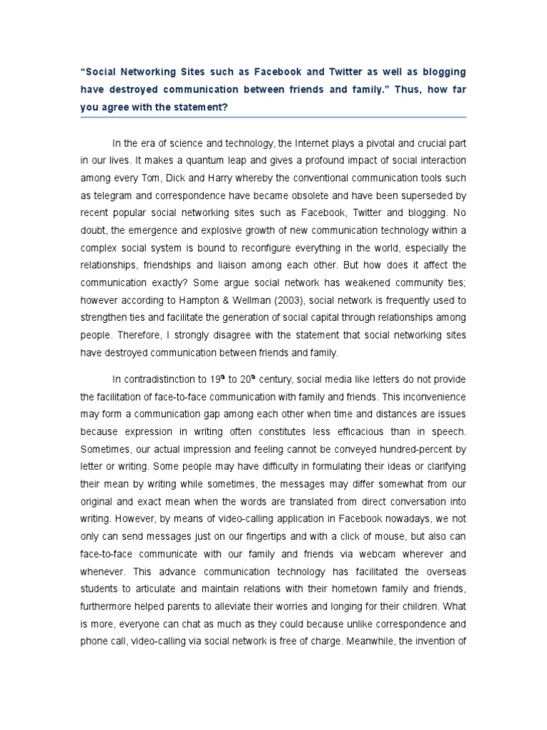 people. Therefore, I strongly disagree with the statement that social networking sites