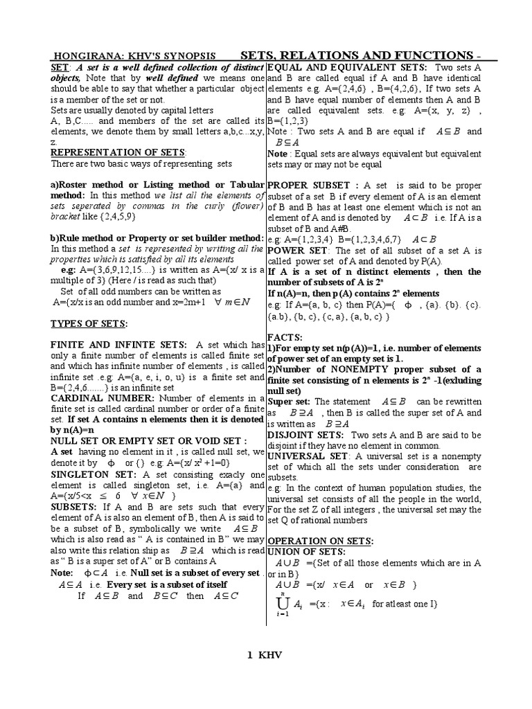 EQUAL AND EQUIVALENT SETS: Two sets A