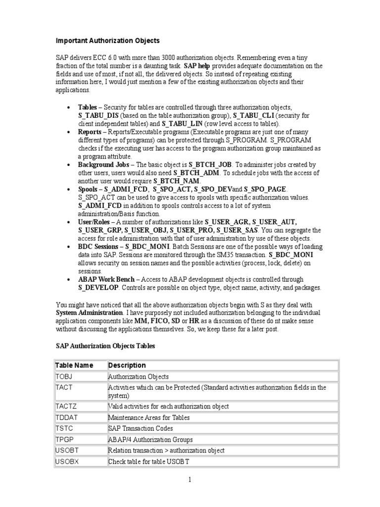 SAP delivers ECC 6.0 with more than 3000 authorization objects. Remembering even a tiny
