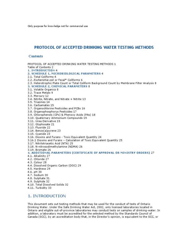 (RDL). The methods are grouped as follows: Schedule 1, Microbiological Parameters; Schedule 2,