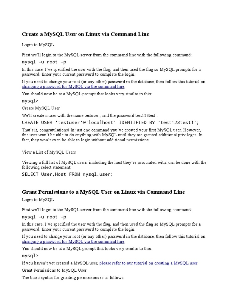 If you havent yet created a MySQL user, please refer to our tutorial on creating a MySQL user.