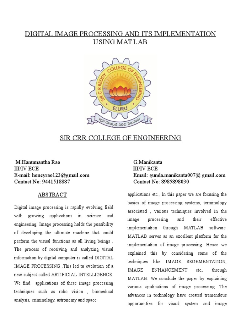 DIGITAL IMAGE PROCESSING AND ITS IMPLEMENTATION