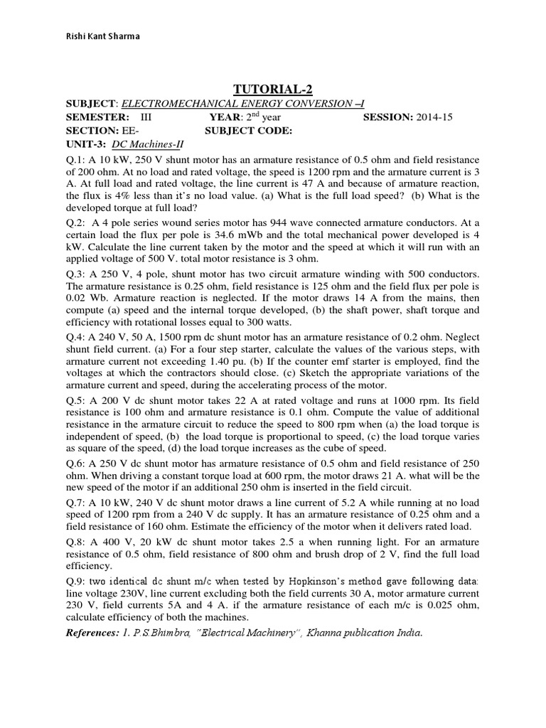 SUBJECT: ELECTROMECHANICAL ENERGY CONVERSION I