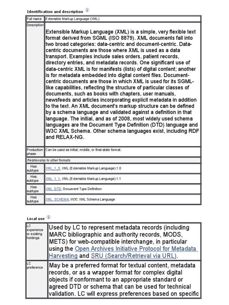 documents in other schema languages for defining XMLbased formats. LC will prefer XML that represents the