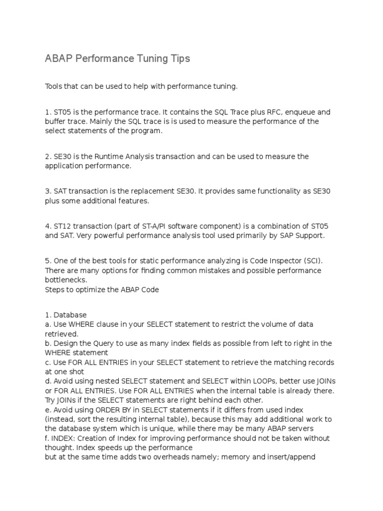 ABAP Performance Tuning Tips