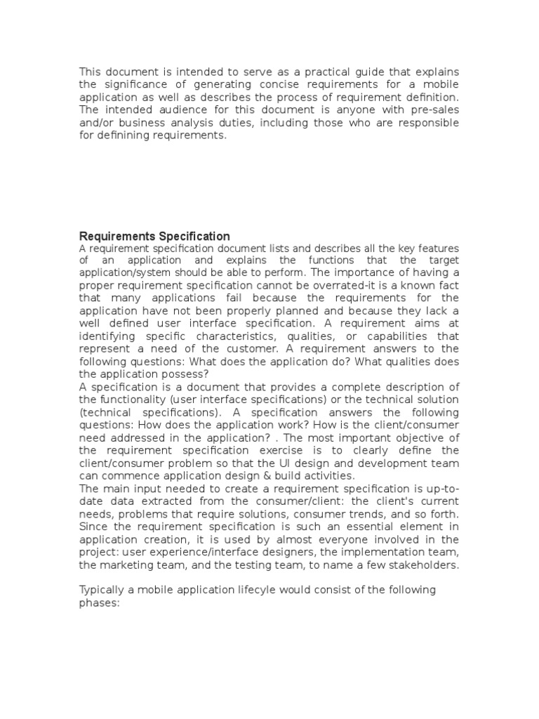 The main input needed to create a requirement specification is up-todate data extracted from the consumer/client: the client's current