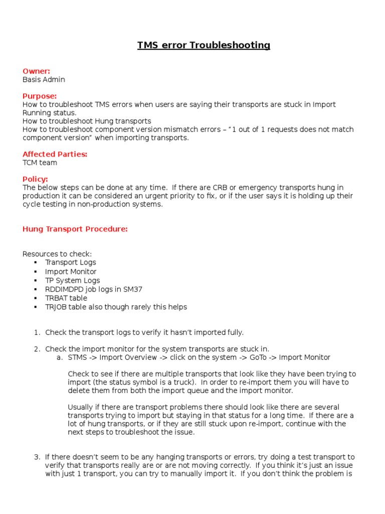How to troubleshoot TMS errors when users are saying their transports are stuck in Import