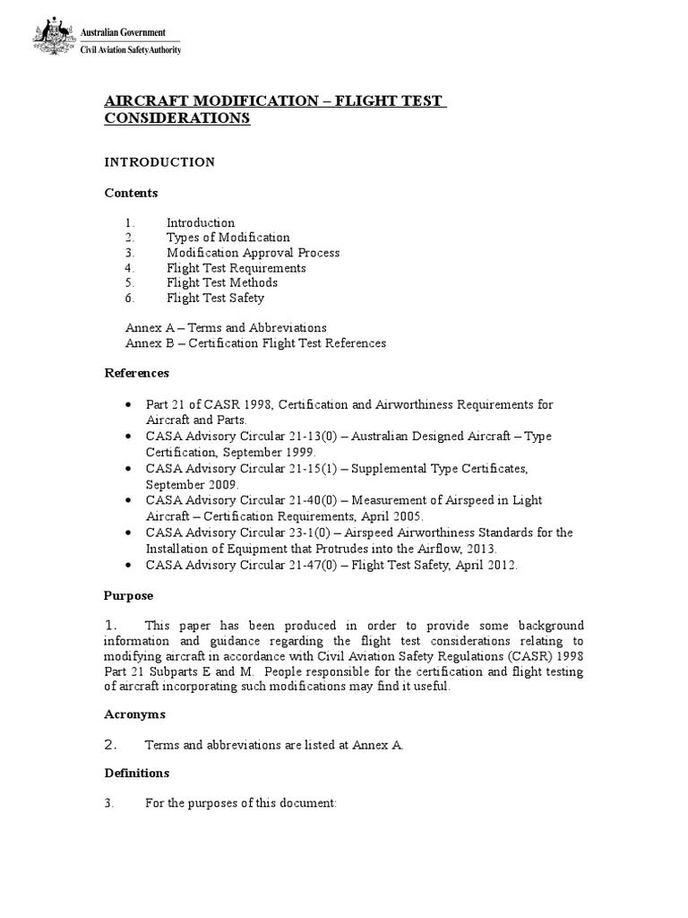background information on modification flight testing requirements and to offer