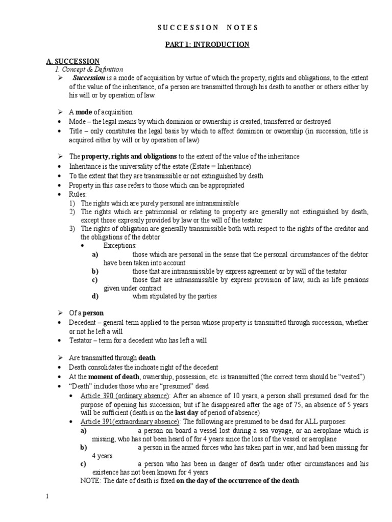 Succession is a mode of acquisition by virtue of which the property, rights and obligations, to the extent