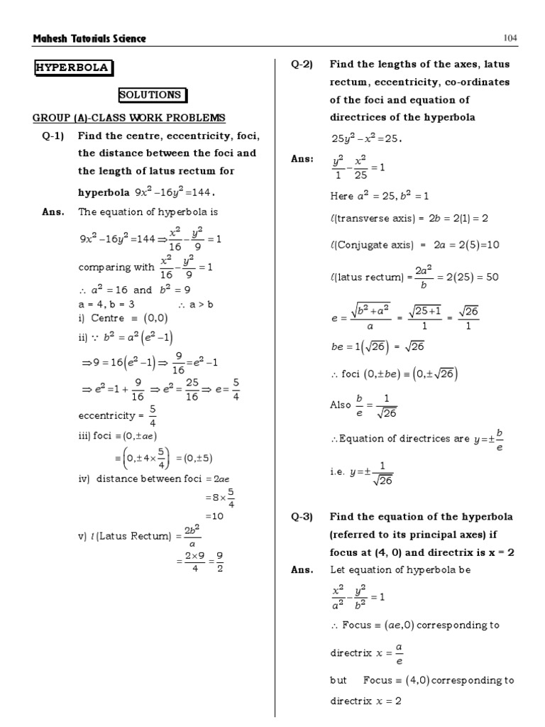 b 2 = a 2 e 2 − 1 = a 2e 2 − a 2 Ans. Let equation of hyperbola be