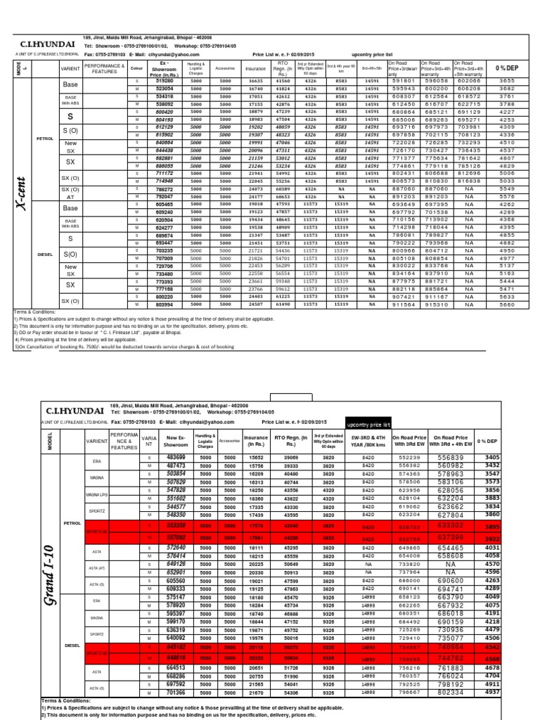 4) Subject to Price Confirmation from HMIL (New Prices Applicable w.e.f 01/1/2015)