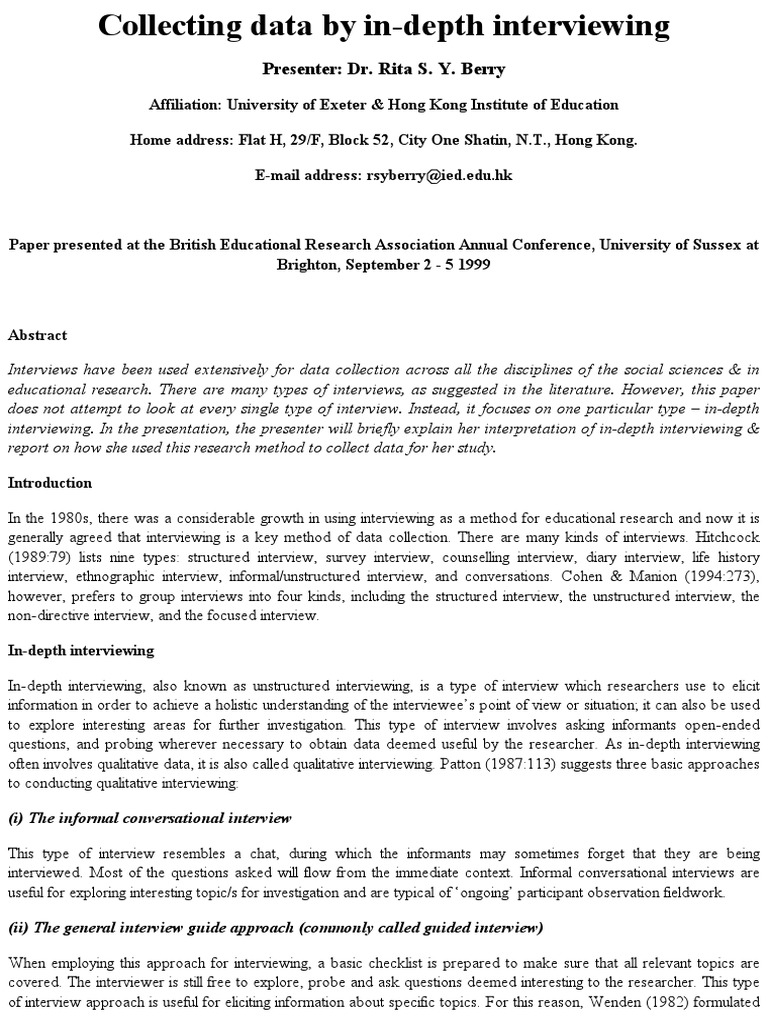 To conclude, in-depth interviewing is now widely used in educational research and is generally regarded as a powerful