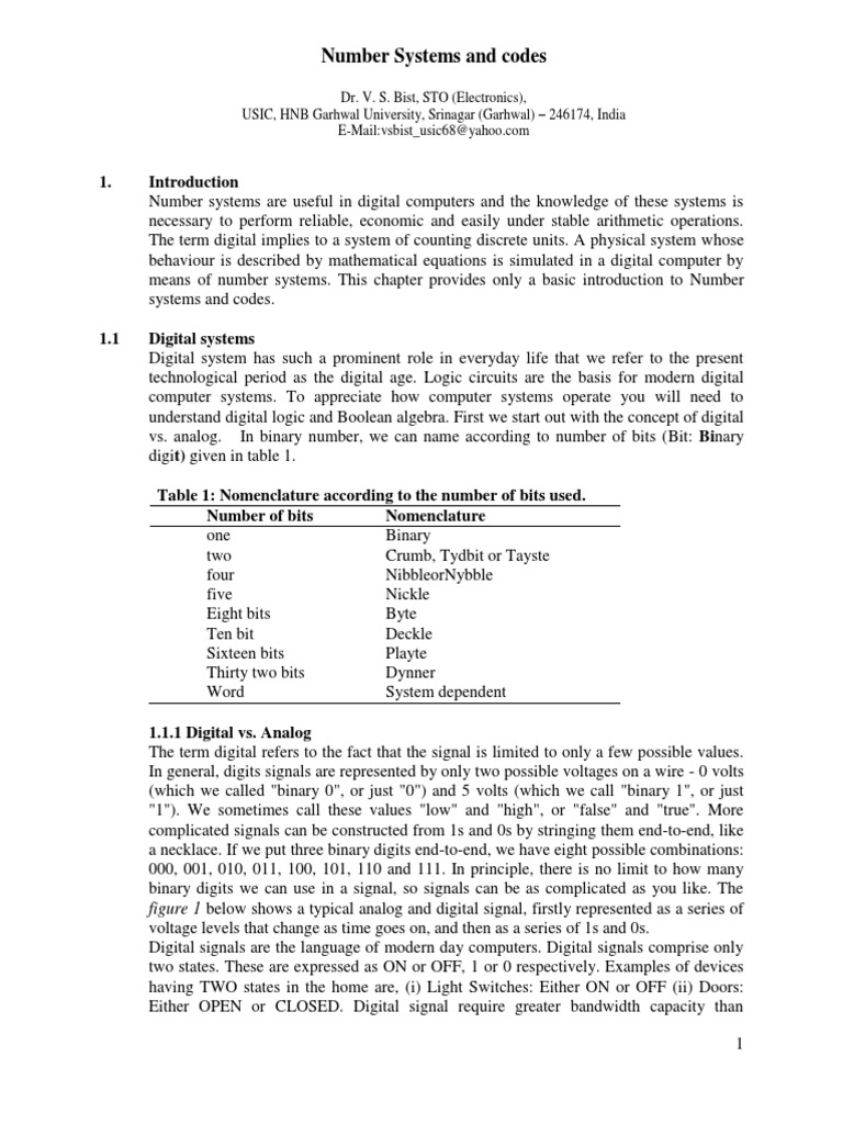 vs. analog. In binary number, we can name according to number of bits (Bit: Binary