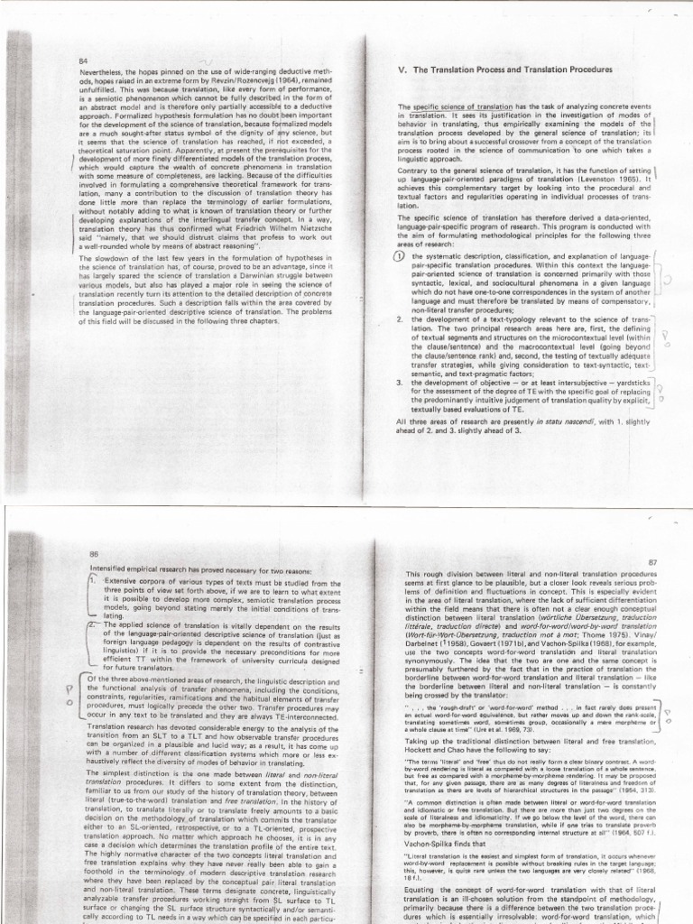 the language-pair-oriented descriptive science of translation. The problems non-literal transfer procedures;