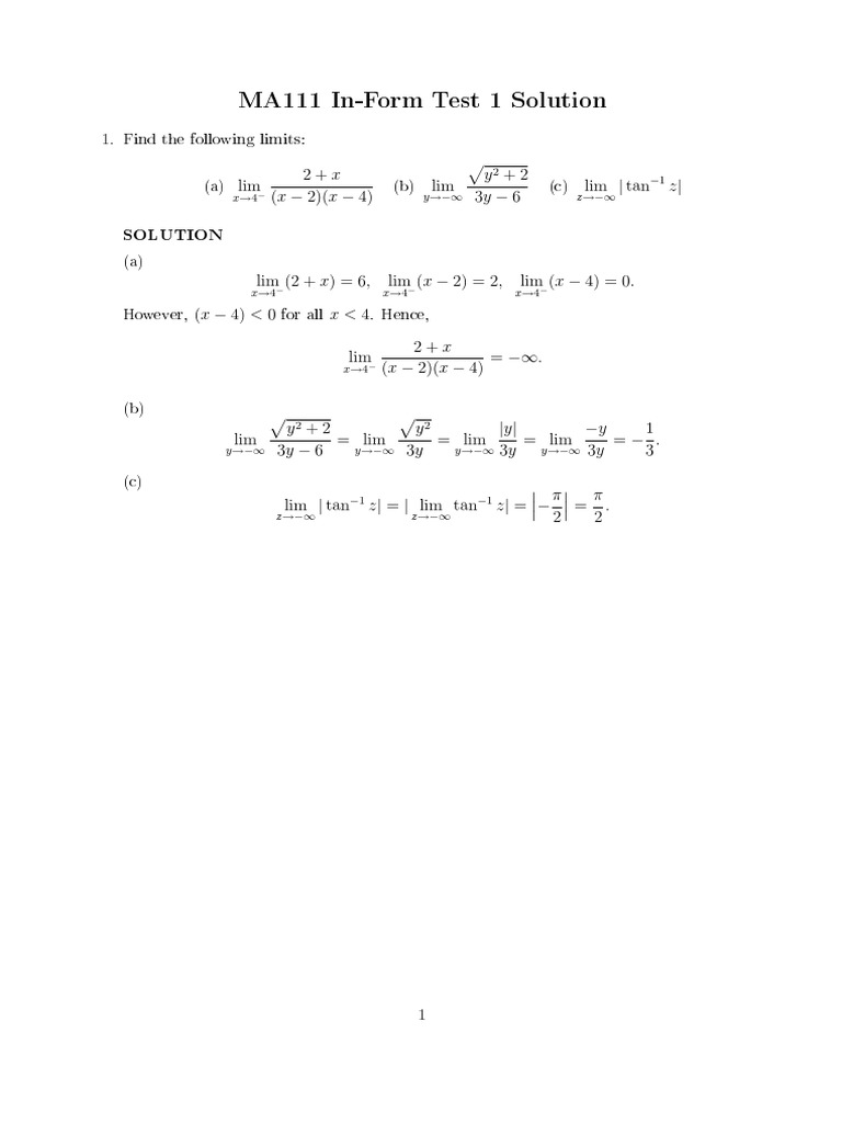 MA111 In-Form Test 1 Solution