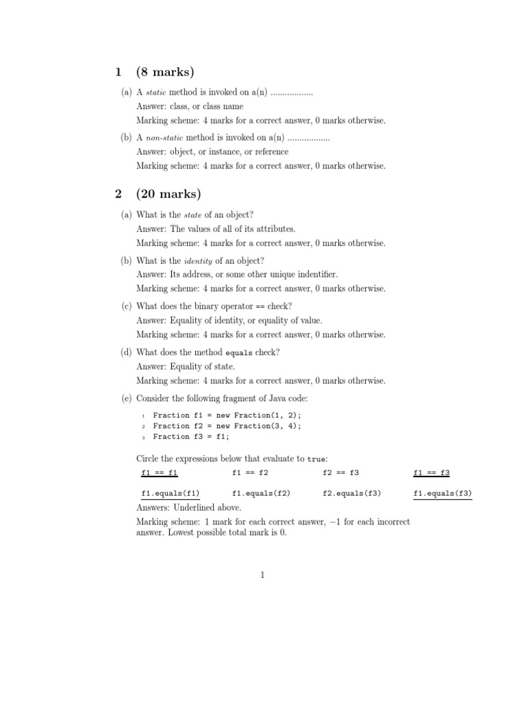 Marking scheme: 1 mark for each correct answer, 1 for each incorrect