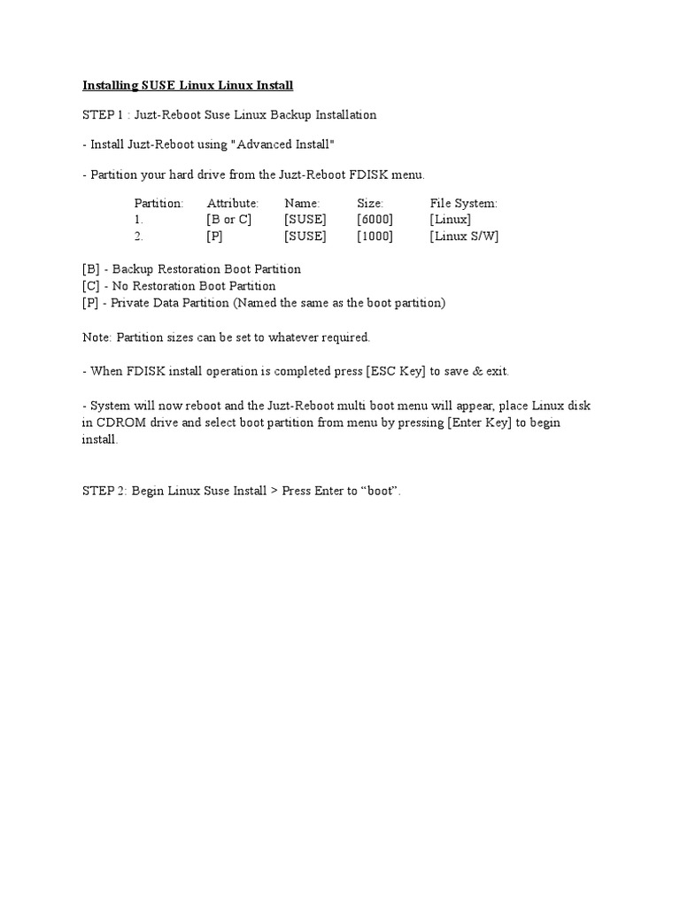 STEP 1 : Juzt-Reboot Suse Linux Backup Installation