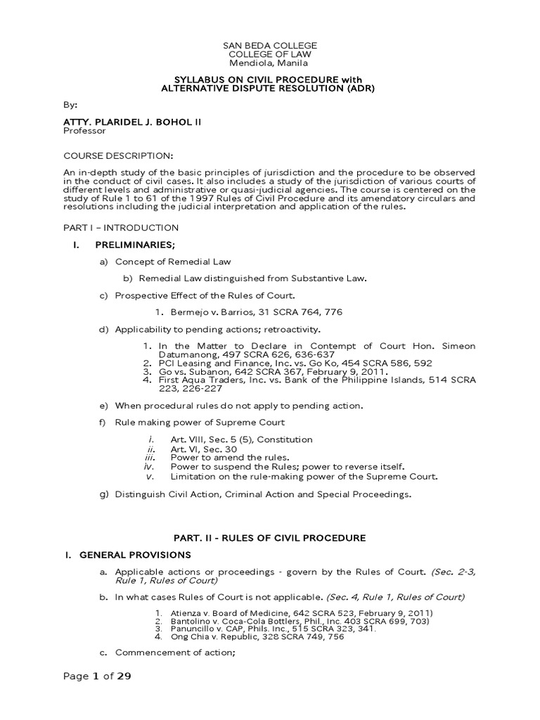 study of Rule 1 to 61 of the 1997 Rules of Civil Procedure and its amendatory circulars and