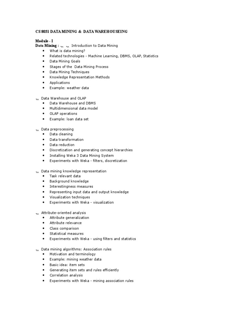 CS 8031 DATA MINING & DATA WAREHOUSEING