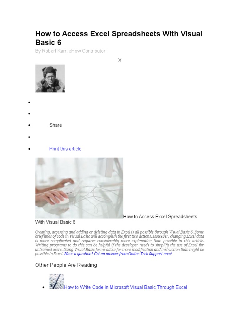 Creating, accessing and adding or deleting data in Excel is all possible through Visual Basic 6. Some