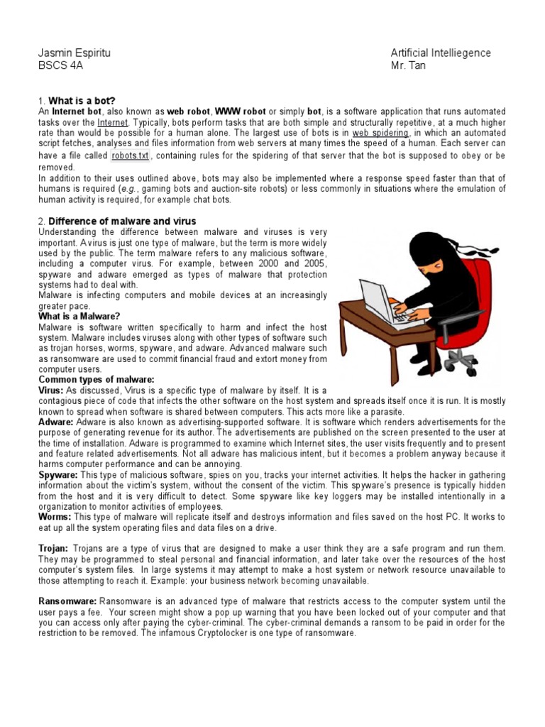 as trojan horses, worms, spyware, and adware. Advanced malware such