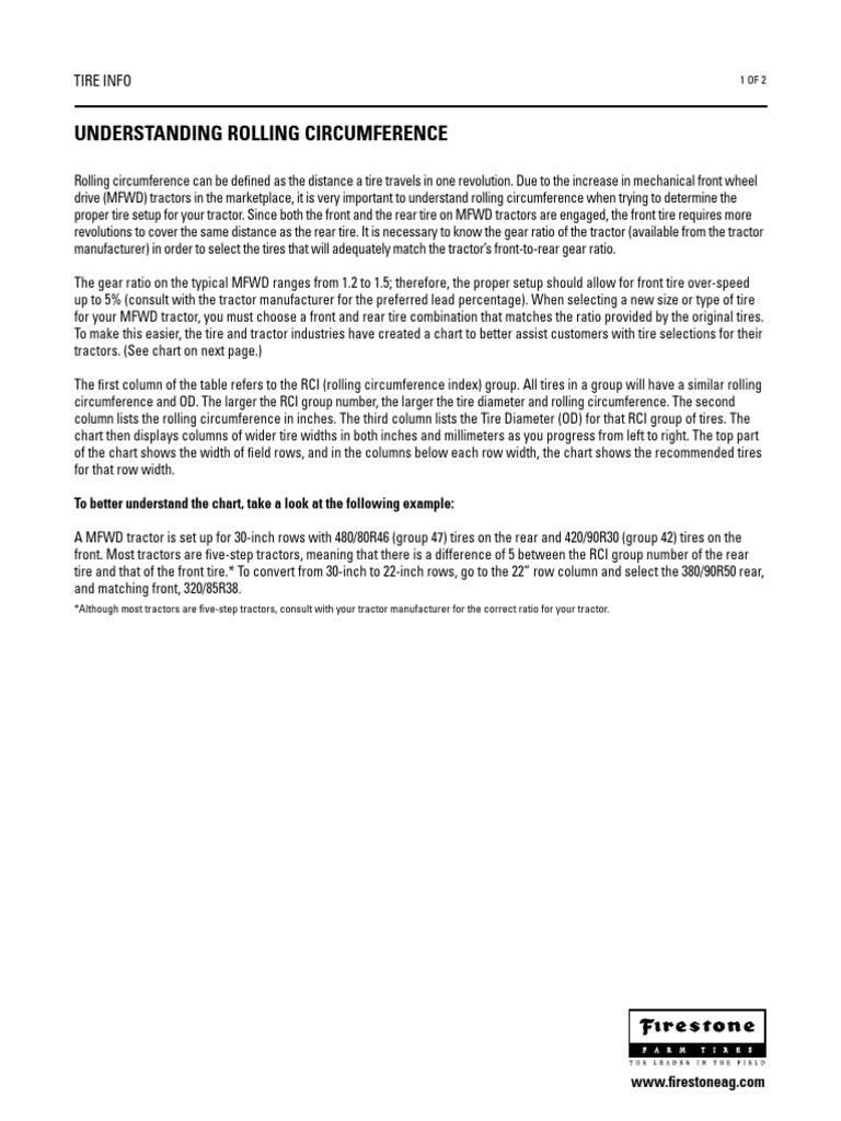 drive (MFWD) tractors in the marketplace, it is very important to understand rolling circumference when trying to determine the