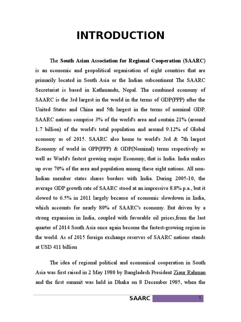 of SAARC as a regionalorganization of South Asia. The socio-economic and
