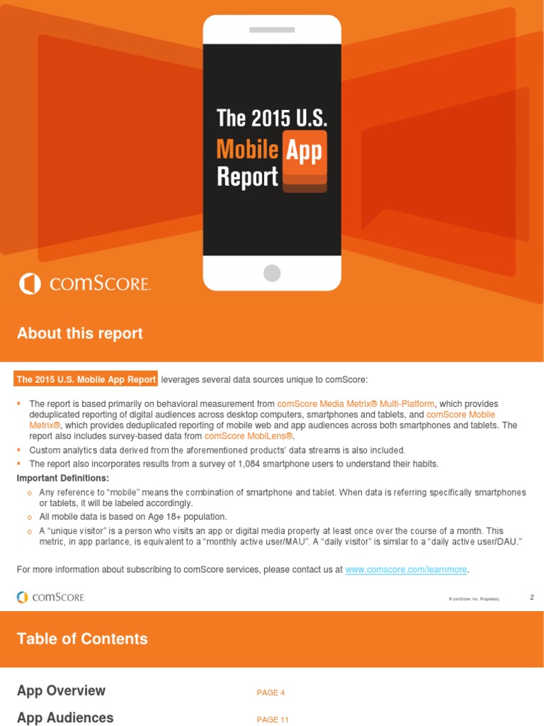 The 2015 U.S. Mobile App Report leverages several data sources unique to comScore: