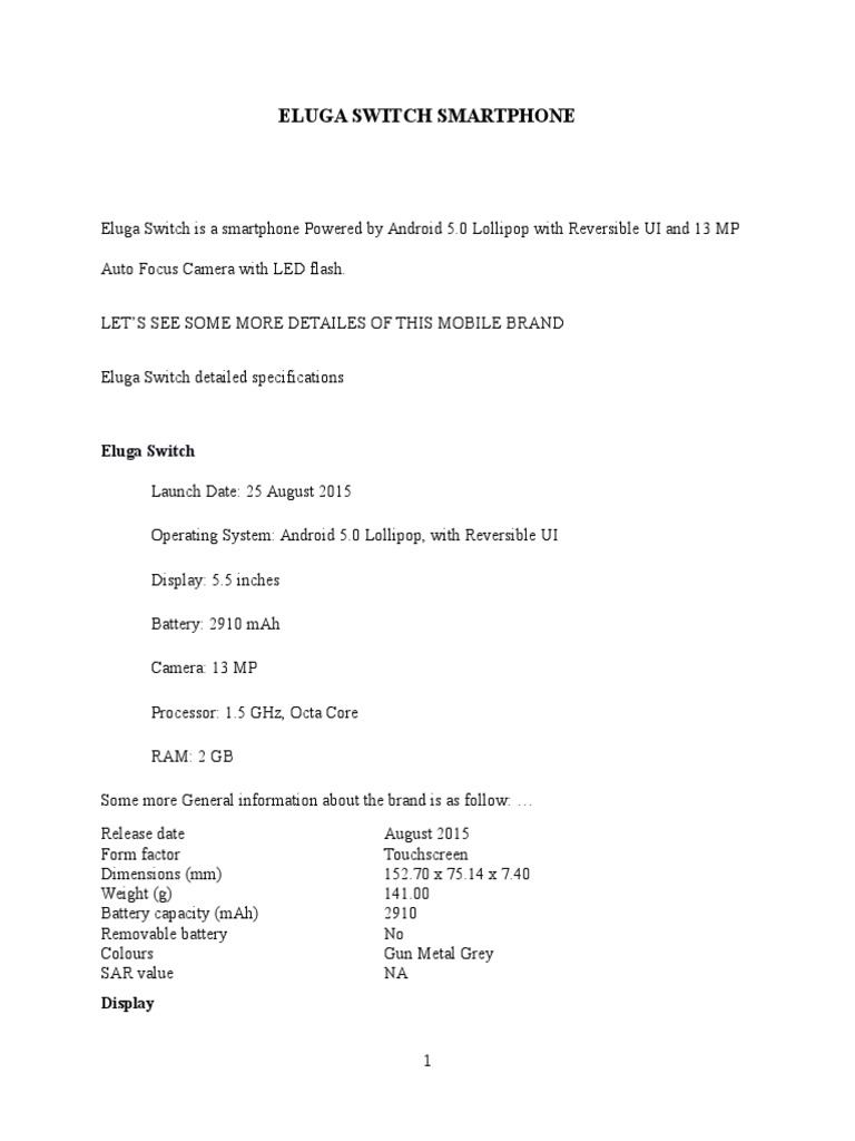 Eluga Switch is a smartphone Powered by Android 5.0 Lollipop with Reversible UI and 13 MP