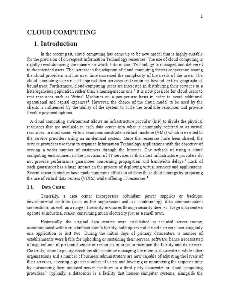 resources. In most cases, virtual resources constitute a virtual machine (VMs) which are rented to