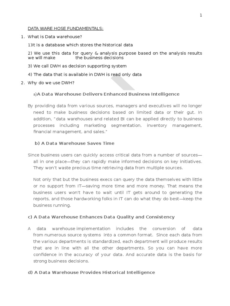 a)A Data Warehouse Delivers Enhanced Business Intelligence