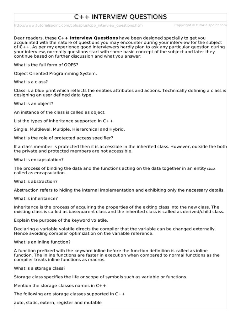 C++ INTERVIEW QUESTIONS