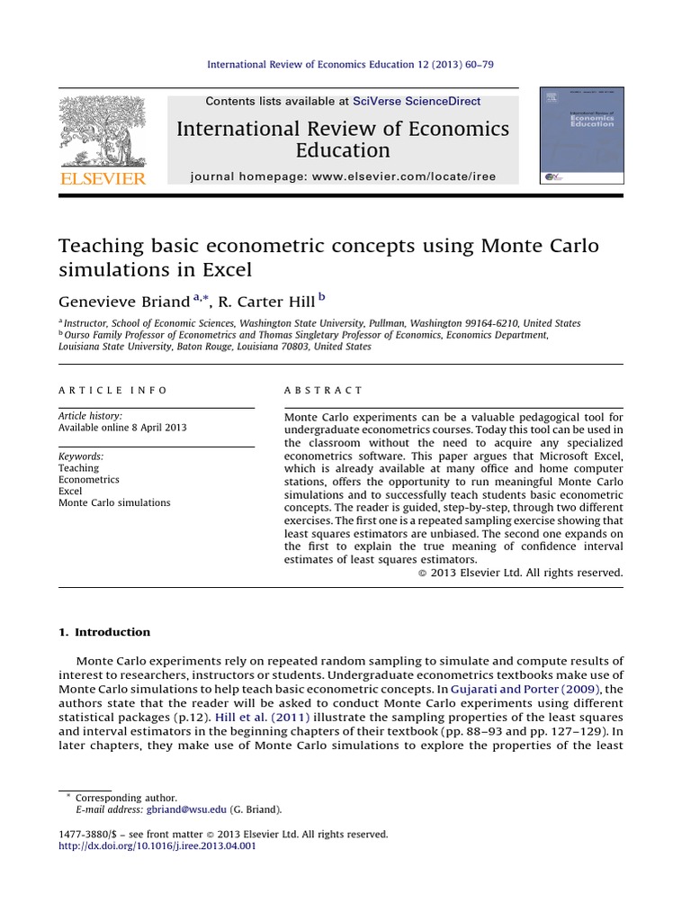 advocate of Monte Carlo experiments as a pedagogical tool for undergraduate econometrics courses.