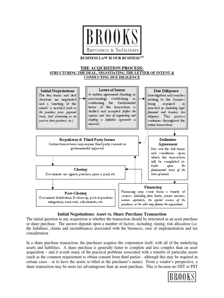 acquisition process. Specific deal considerations are entirely dependent upon the particular facts of your