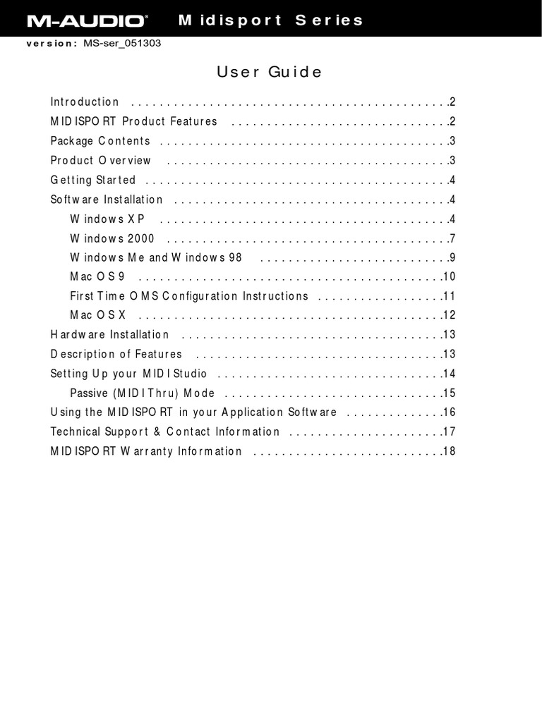 Thank you for purchasing a M-Audio MIDISPORT MIDI interface for