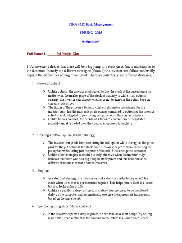 1. An investor believes that there will be a big jump in a stock price, but is uncertain as to