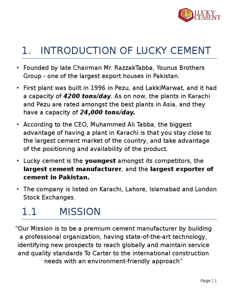 INTRODUCTION OF LUCKY CEMENT