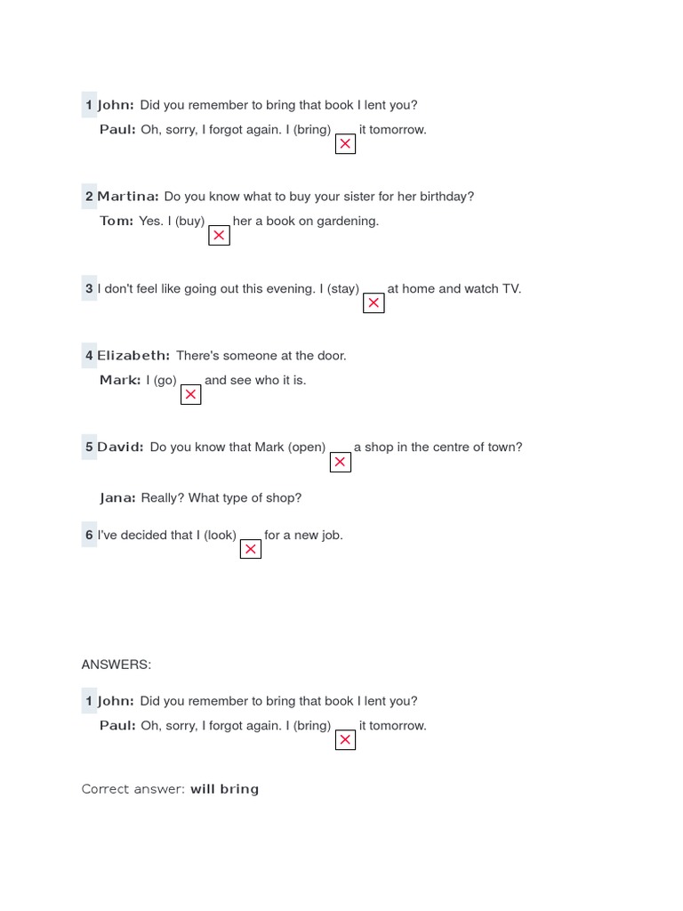 Future tenses Exercise Answers