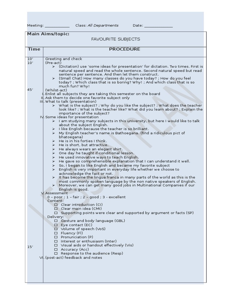 What is the subject? ; Why do you like the subject? ; What does the teacher