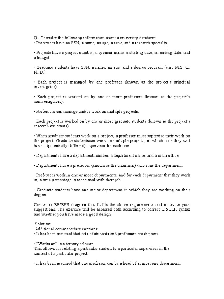 suggestions. The exercise will be assessed both according to correct ER/EER syntax