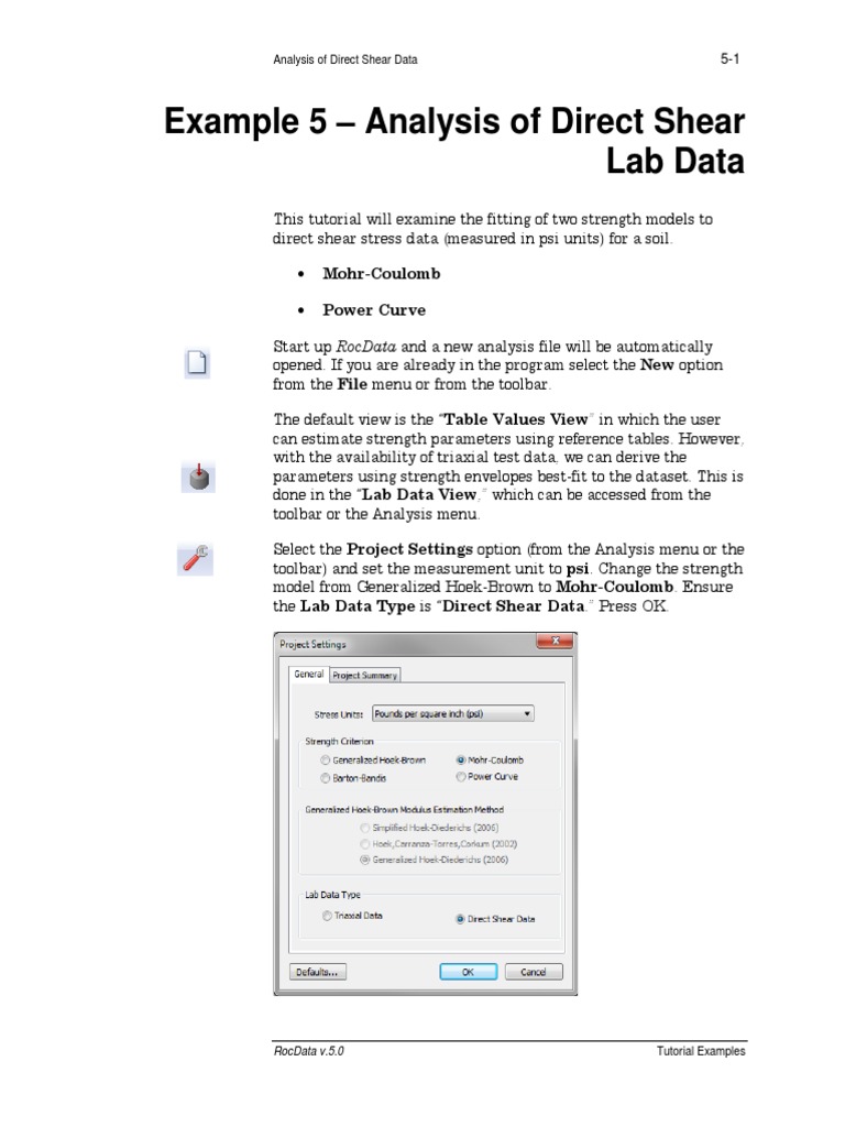 the Lab Data Type is Direct Shear Data. Press OK. Press