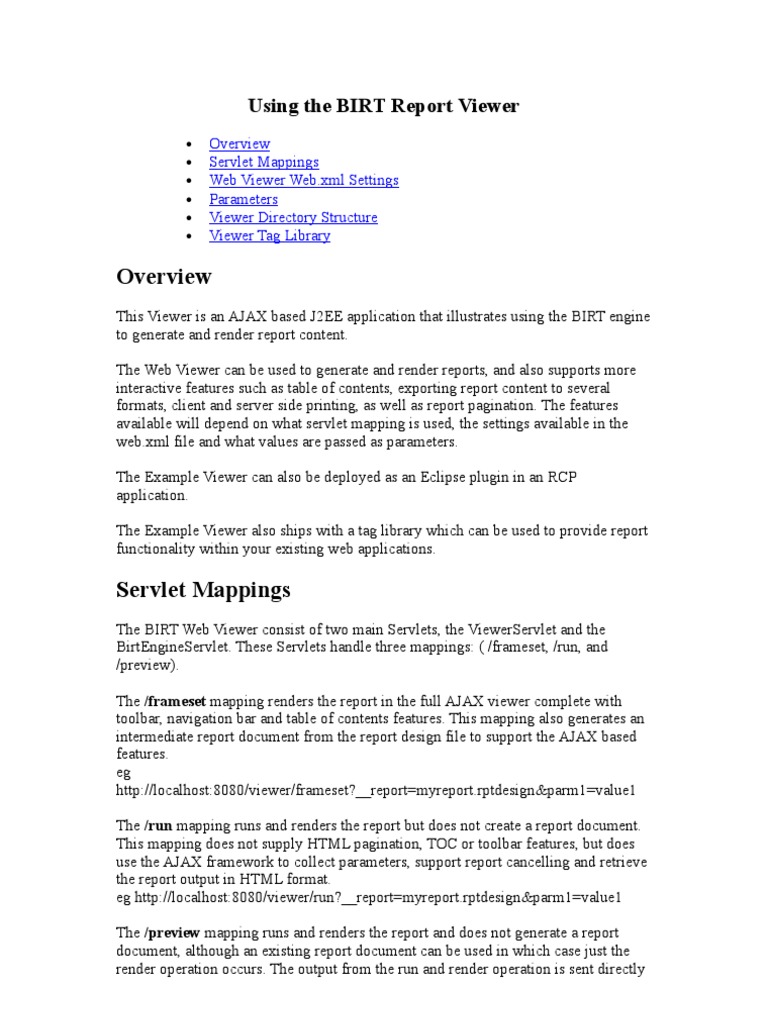The BIRT Web Viewer consist of two main Servlets, the ViewerServlet and the